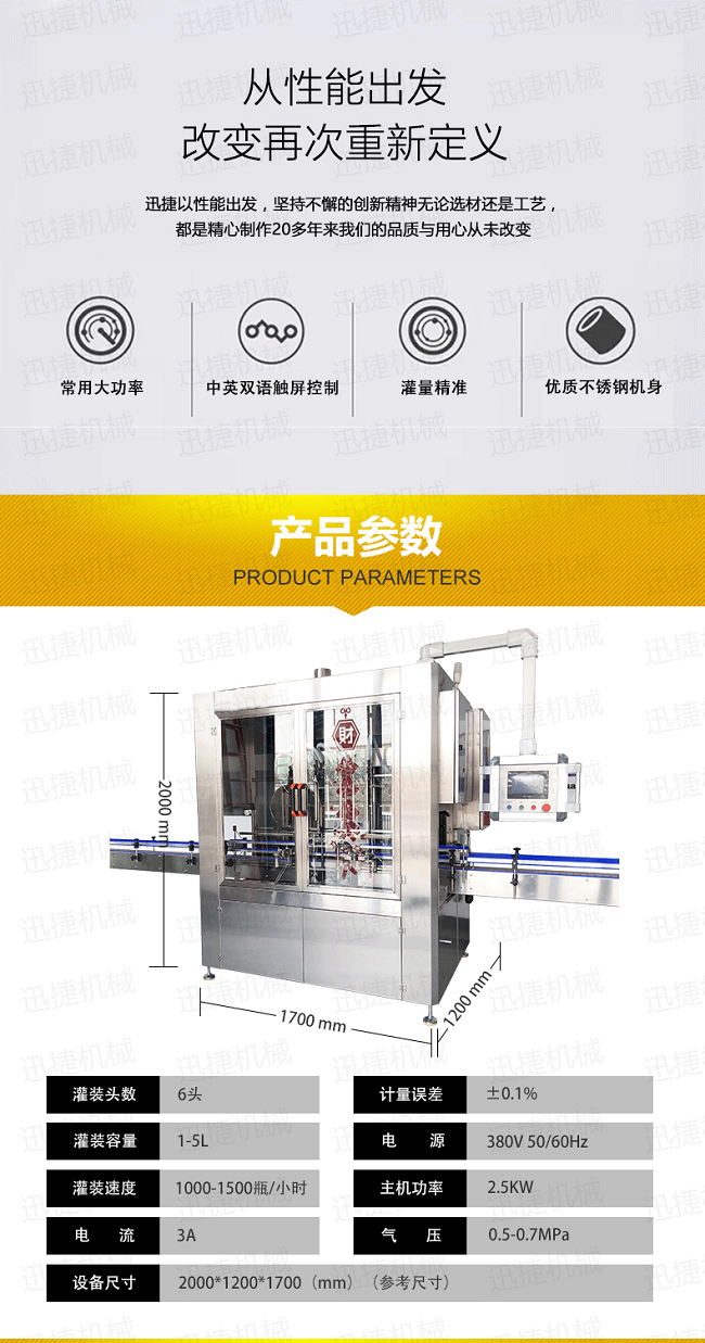 4、灌裝量調整方便,不需更換零配件,即可適用于不同規(guī)格的瓶子,調整方便,適應性強;