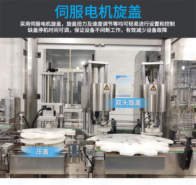 2、灌裝機(jī)以進(jìn)口PLC電腦控制、伺服驅(qū)動(dòng)計(jì)量,全彩色觸摸屏人機(jī)界面,一鍵完成計(jì)量切換確保容量之調(diào)整簡(jiǎn)易、快捷、準(zhǔn)確。是任何形式的灌裝機(jī)無(wú)法替代的;