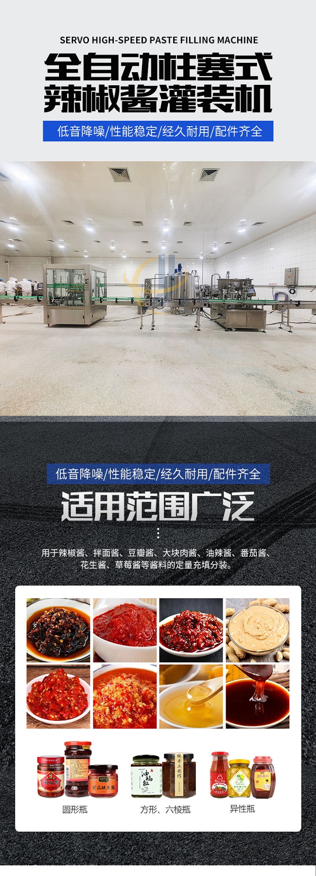這款柱塞式辣椒醬灌裝機(jī)低音降噪、性能穩(wěn)定、經(jīng)久耐用、配件齊全,適用范圍廣泛用于辣椒醬、拌面醬、豆瓣醬、大塊肉醬、油辣醬、番茄醬花生醬、草莓醬等醬料的定量充填分裝。雙螺旋變頻攪拌,有效防止物料沉淀造成的計量不準(zhǔn)。物料通過三通轉(zhuǎn)向閥連接攪拌料箱,攪拌料箱里配置變頻攪拌系統(tǒng),攪拌系統(tǒng)讓物料在極低破壞率的情況下,得到充分的攪拌。