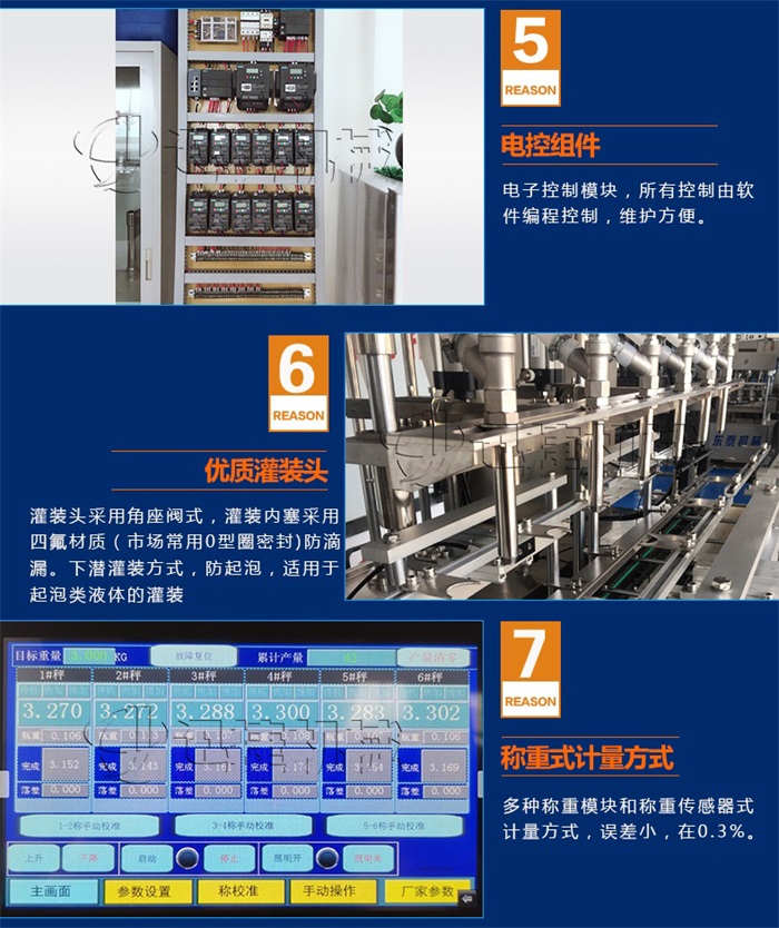 機適用于對流體5kg-30kg的計重量灌裝。自動完成計數(shù)進瓶、計重量灌裝、輸送出瓶等一系列操作。 特別適用于水劑、食用油,潤滑油的定量灌裝,是食品,醫(yī)藥,化妝品以及精細化工等行業(yè)的包裝機。本機采用可編程控制器(PLC)、高速工控組態(tài)軟件進行實時監(jiān)控的控制,使用調(diào)節(jié)方便。整機按GMP標(biāo)準(zhǔn)要求制作,各管路連接采用快裝方式,拆卸清洗方便,與物料接觸部位及外露部位均采用優(yōu)質(zhì)不銹鋼制造。整機安全、環(huán)保、安全、美觀、能適應(yīng)各種不同環(huán)境工作。