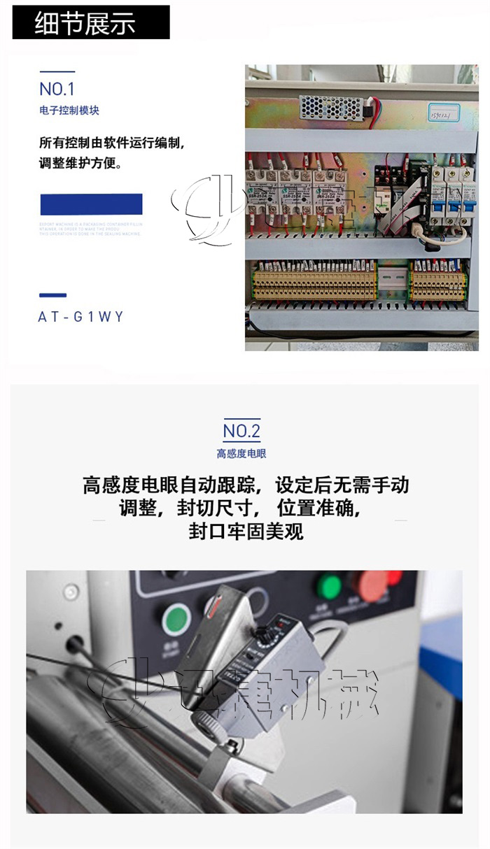 C、微電腦包裝控制器,優(yōu)良的人機(jī)對話模式,使速度、袋長、切點(diǎn)位置檢測等都可在界面上直接顯示。